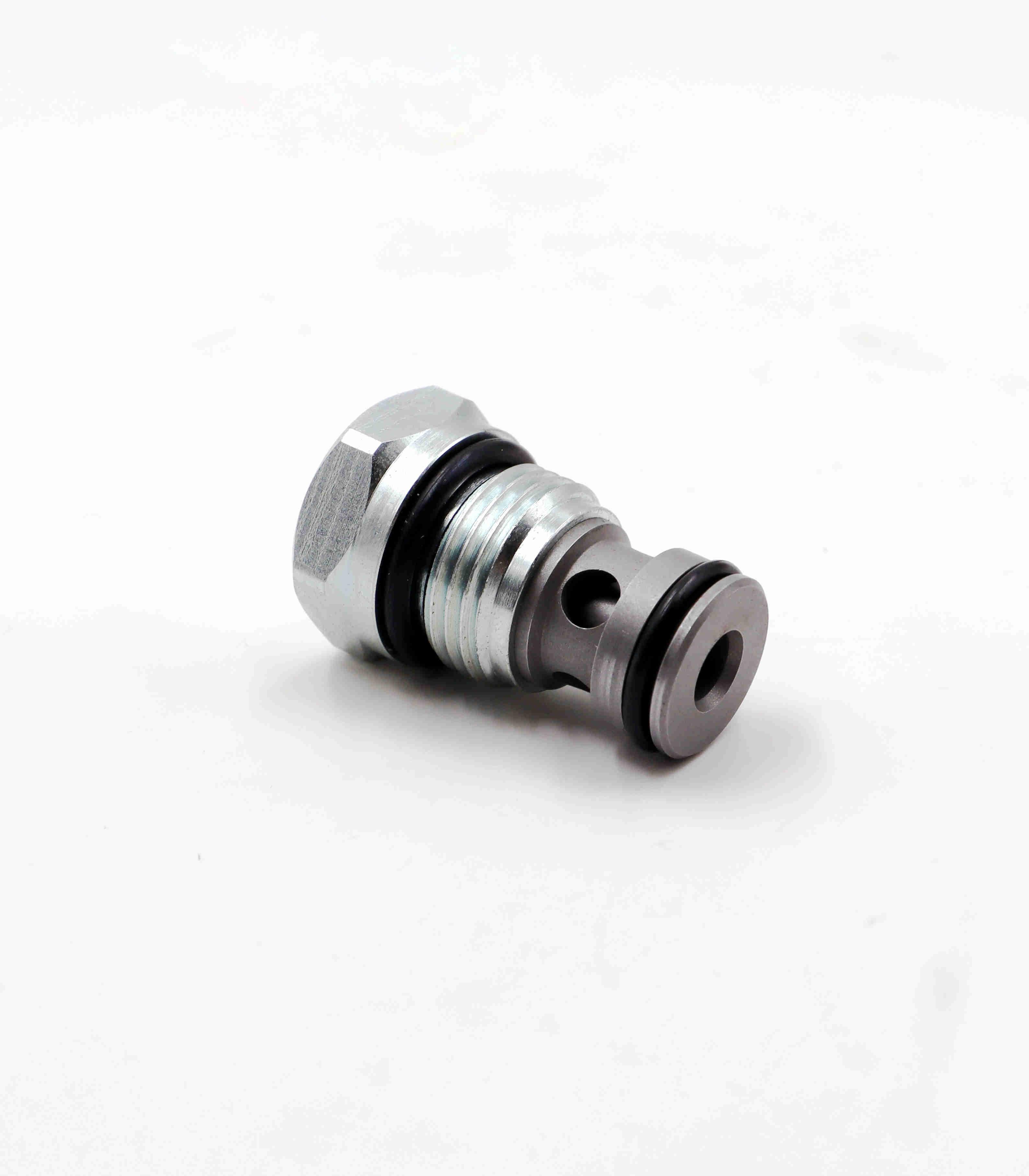Poppet is hardened and ground to guarantee minimal wear and to extend service life. All external surfaces are zinc plated and corrosion-proof. All valve parts are made of high strength steel. Compact size. Industry common cavity.