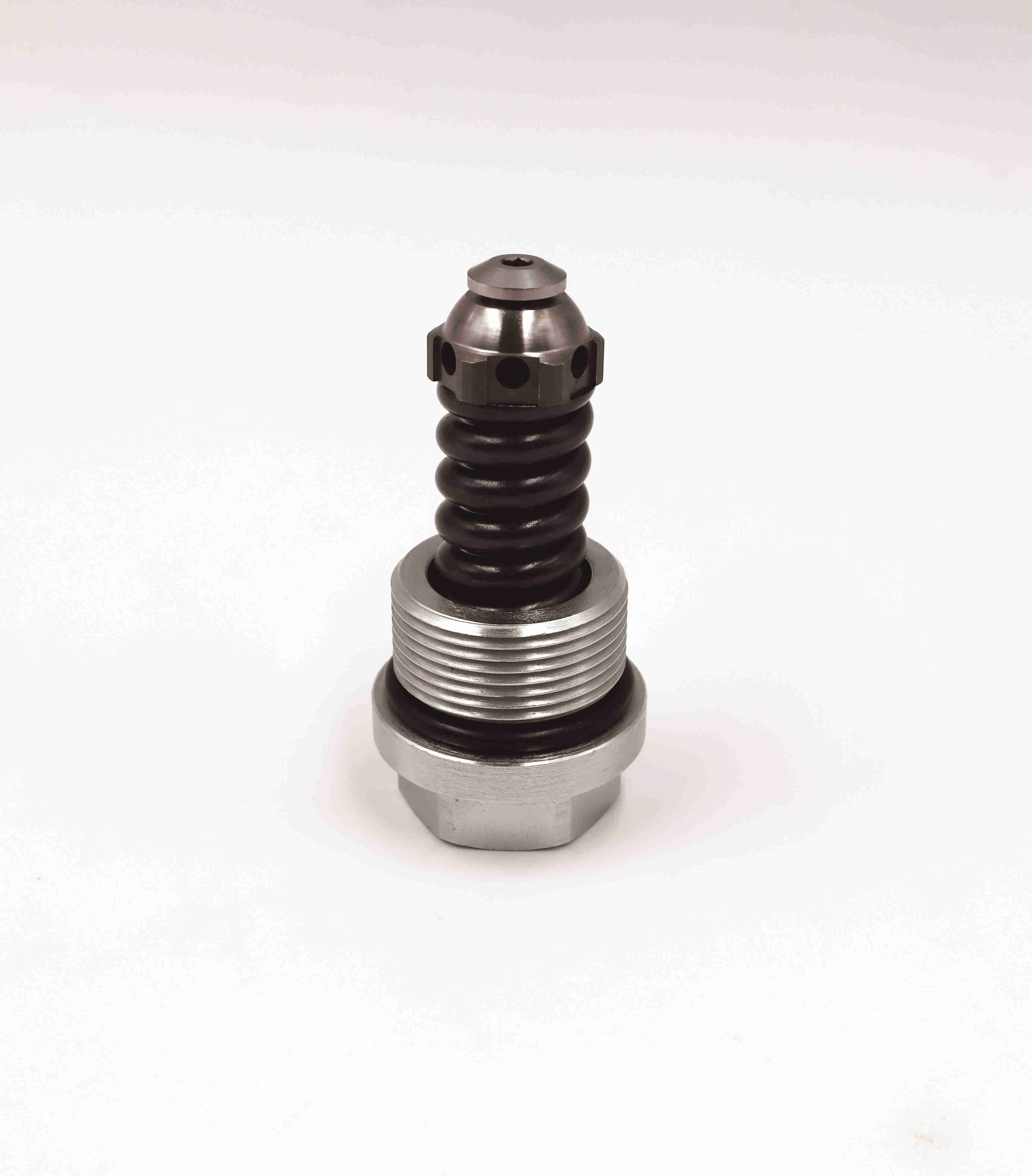 Poppet is hardened and ground to guarantee minimal wear and to extend service life. All external surfaces are zinc plated and corrosion-proof. All valve parts are made of high strength steel. Compact size. Pressure setting is pre-adjusted by the factory and cannot be changed. Optional spring ranges to 400 bar .